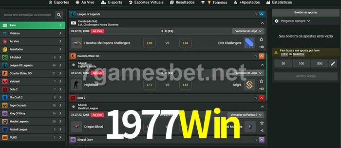 O 1977Win oferece uma grande seleção de opções de apostas em e-sports com probabilidades competitivas